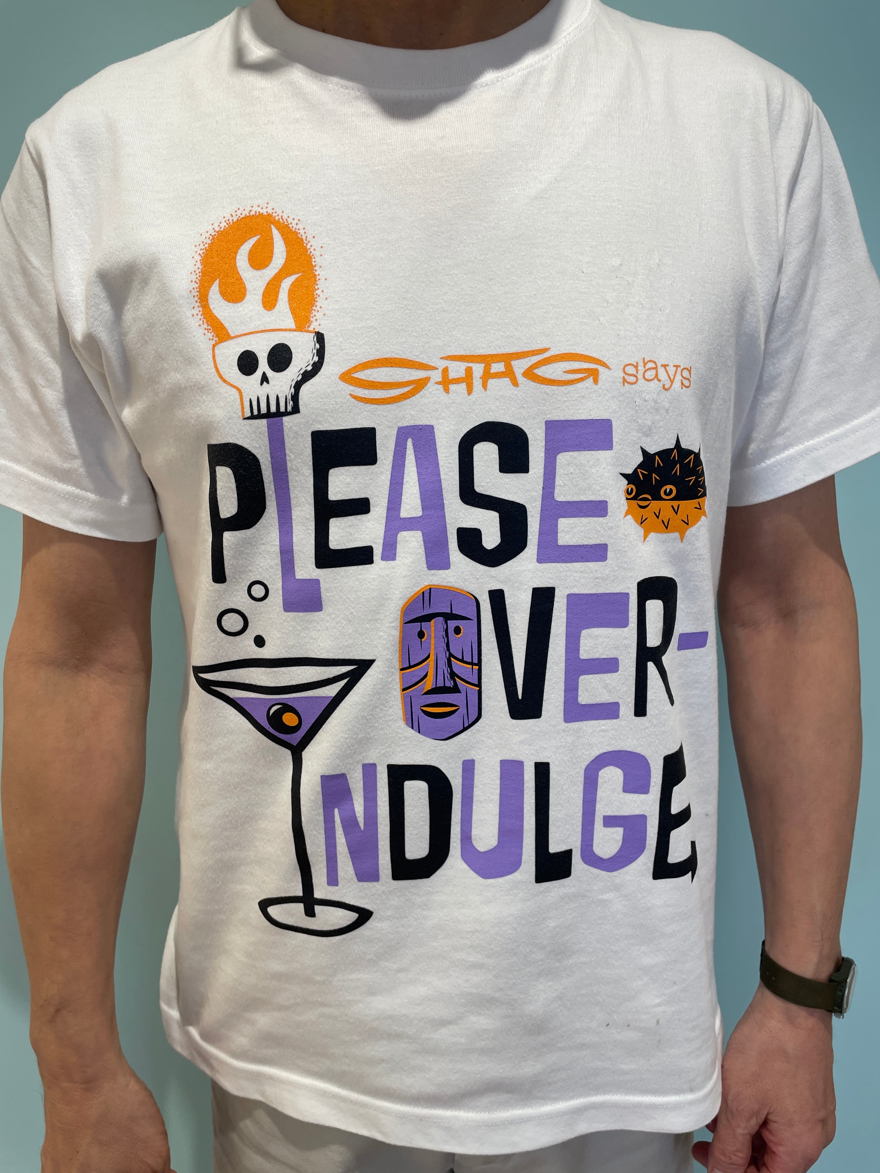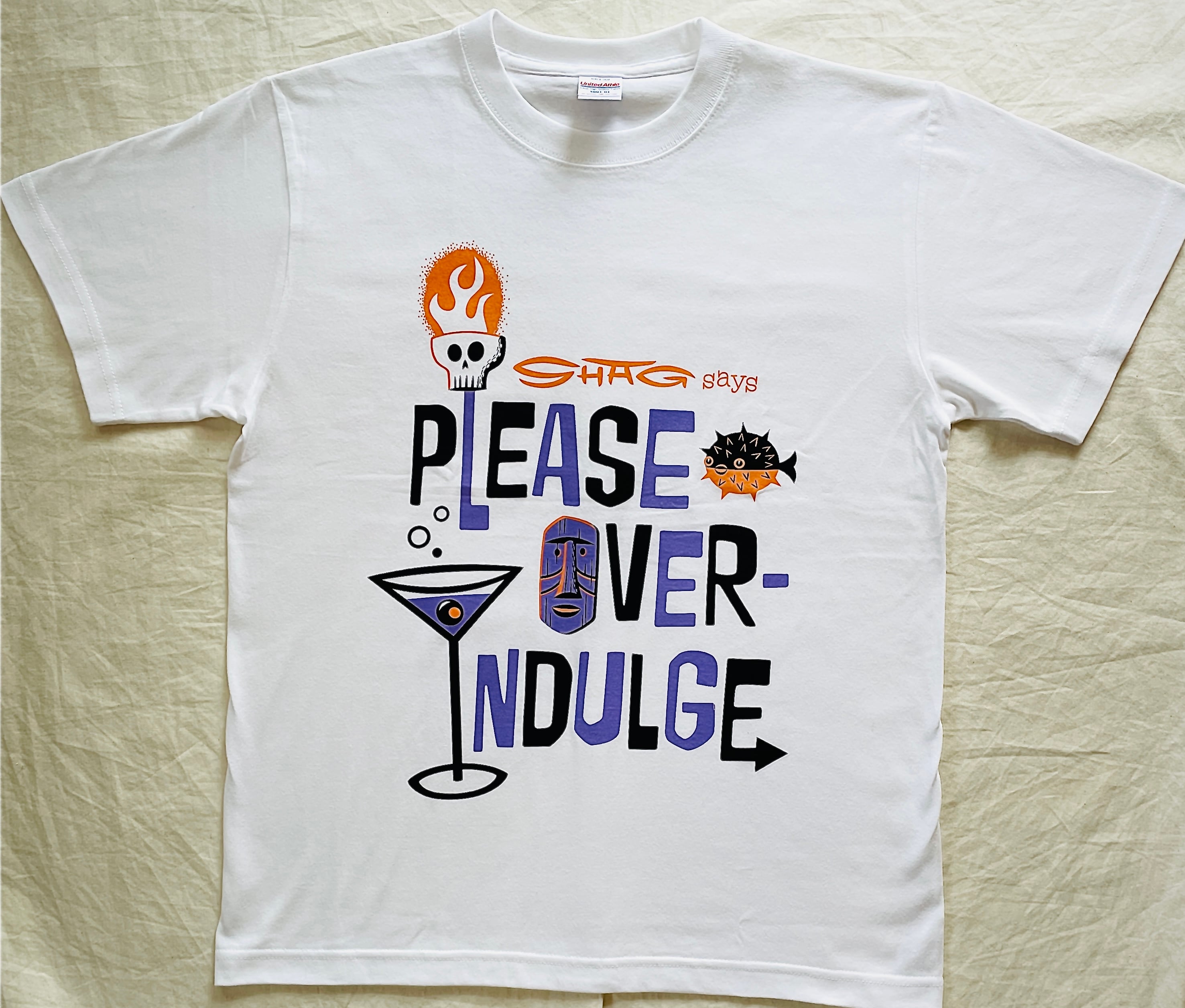 「Shag says-Please Overindulge/SHAG曰く-どうぞ思いっきり楽しんで」のプリントが。